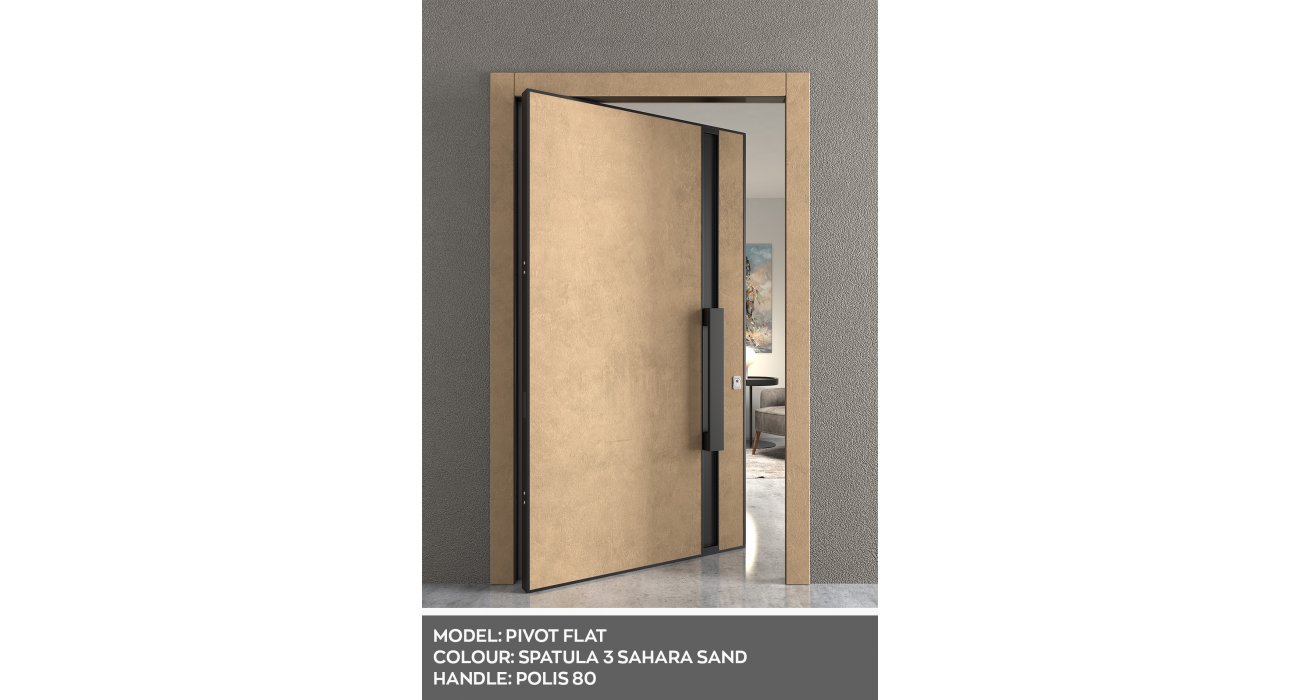 Σχεδιασμένη να προσφέρει ασφάλεια, η αξονική πόρτα PIVOT παράγει μία εντυπωσιακή προοπτική χάρη στην περιστροφή της γύρω από τον αξονικό μεντεσέ, συμβάλλοντας με τον καλύτερο τρόπο στον αρχιτεκτονικό σχεδιασμό της σύγχρονης κατοικίας.